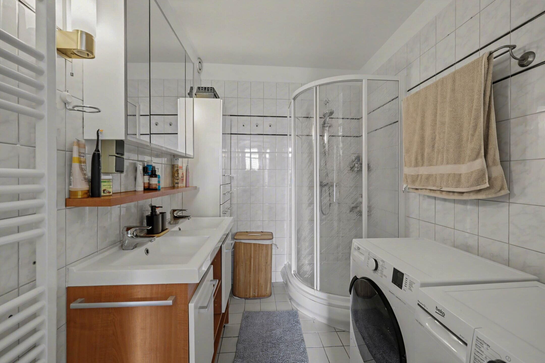 - Douche en dubbele wastafel